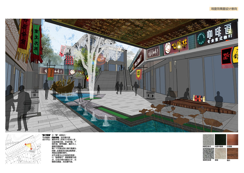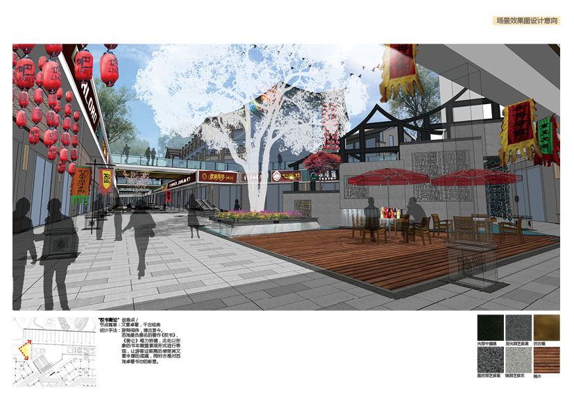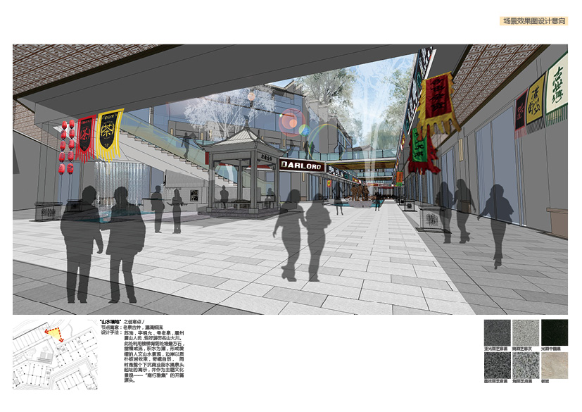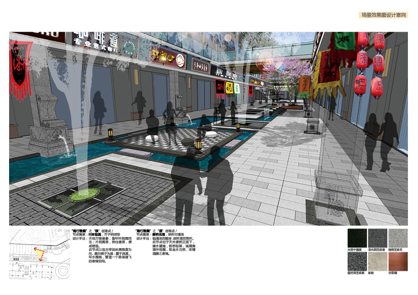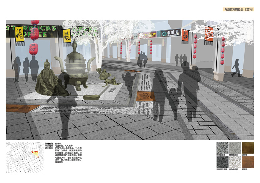 生活方式与城市性格使眉山本地文化成为自然而然的选择。作为整个城市居民的集体记忆并秉承苏洵公园的文化延伸,“苏洵文化”自然而然成为作为眉州本土文化的代表,被当作表现主题巧妙置入,并密切的契合到商业建筑群。符号语言的使用最终使九巷十坊也成为眉山的一个标本:熟悉的街巷尺度和文化要素,使集体记忆得到延续,虽然它是以商业的形式被表达。CCLA西悉设计出品