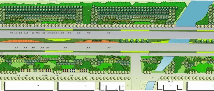 园林道路是全园的骨架,具有发挥组织游览路线、连接景观区等重要功能。道路植物配置无论从植物品种的选择上还是搭配形式(包括色彩、层次高低、大小面积比例等)都要比城市道路配置更加丰富多样,更加自由生动。