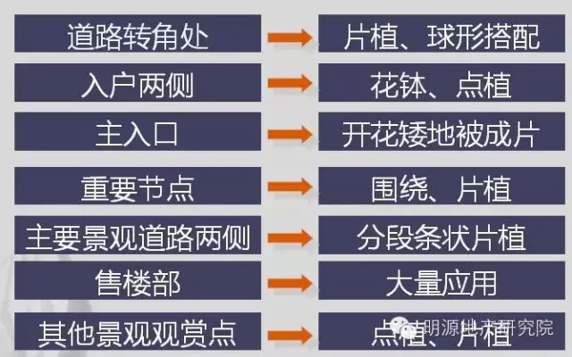 2.主次。组团的种植为达到景观突出、辨识性强,需要突出组