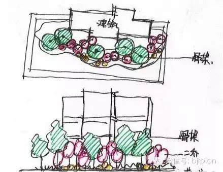 植配是辅助景观设计的,是设计中的软景体现,可以更好的营造空间,增强景观氛围和感觉,有想法的植配是会让人感到非常舒服或有想象空间的。在做植配方案时,要找到理由(以免别人乱改你的方案)要结合功能,考虑人的体验和使用,品种其次。当你把握不好时,就把你配的植物从平面拉出立面草图勾一勾,大概就知道改哪里了。千万不要有空隙就塞一棵,也不要“撒豆子” ,要寻找之间的联系。