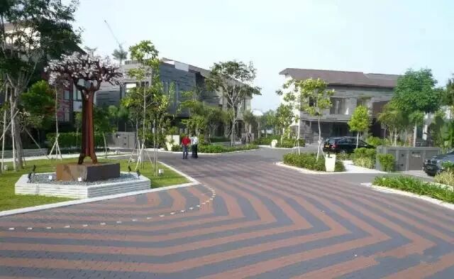 色块的设计比较符合现代人的审美观念。小区在注重运用色块组合的同时,要摒弃以往的一种大色块造景的误区,色块布置的色彩简洁明快,可按设计者的要求任意作出各种图形图案;采用色块的模纹形状可以达到最快的成形效果,满足快速绿化美化的要求;养护相对简单,只需要一次成形后经常间断性进行修剪,就可以达到较好的绿化效果;只要合理选择色叶树种,就可以让色块四季基本不变。现在常见的色块组合有:红色块为红叶小檗;绿色块有瓜子黄杨、雀舌黄杨、大叶黄杨;黄色块有金叶女贞、金边黄杨;也可用红绿草、雪叶菊等草本花卉。