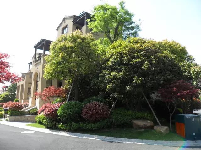1.别墅区间建筑周围与道路两侧的种植区域。
