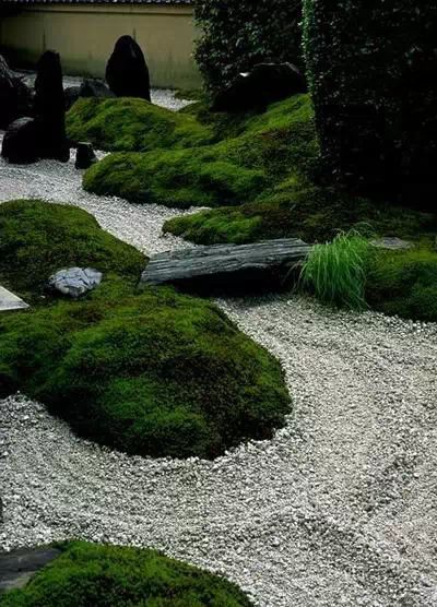 日本庭园内地面常用细草、小竹类、蔓类、羊齿类、藓苔类等植物覆被,很少用砖石满铺。