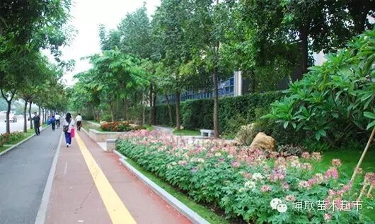 其中南京、武汉、重庆三大火炉城市都喜欢用冠大荫浓的悬铃木、小叶榕等。吐鲁番某些地段在人行道上搭起了葡萄棚。夏威夷喜欢用花大色艳的凤凰木、火烧花、大花紫薇等,树冠下为蕨类地被,一派热带风光。青海西宁用落叶松及宿根花卉地被,呈现温带、高山景观。目前行道树的配植已逐渐向乔、灌、草复层混交发展,大大提高环境效益。但应注意的是,在较窄的,没有车行道分隔绿带的道路两旁的行道地下,不宜配植较高的常绿灌木或小乔木,一旦高空树冠郁闭,汽车尾气扩散不掉,使道路空间变成一条废气污染严重的绿色烟筒。