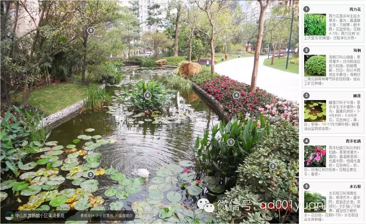 园林植物的配置包括两个方面:一方面是各种植物相互之间的配置,考虑植物种类的选择,树丛的组合,平面和立面的构图、色彩、季相以及园林意境;另一方面是园林植物与其他园林要素如山石、水体、建筑、园路等相互之间的配置。