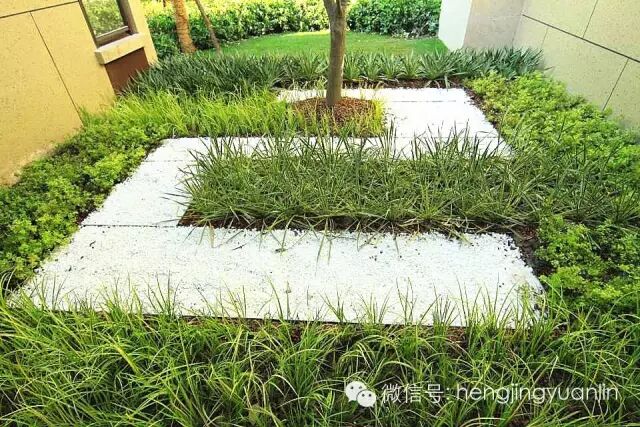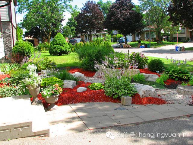 3、花境植物与覆盖料配合最能体现效果,形成精致的景观。
