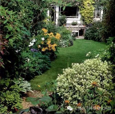 但是在一般的家庭庭园中,如果对野生植物配置不当则会陷入杂乱无章的混乱情境,在一个普通的庭院中如何让野生植物充满乐趣而没有冲突呢?一个小的秘诀就是在庭园的尽头创建野趣,而在住宅附近则以规则式的园艺形式呈现。在两个区域间用平整的草地衔接,如果在草地中间种植一颗垂枝大树,可以将两个强烈对比的区域有趣地结合起来。